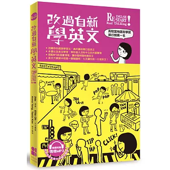 書名:改過自新學英文(隨書附情境MP3) 原文名稱:English Restart Real talking 語言:繁體中文 ISBN:9789861793382 頁數:272 出版社:大田 作者:Ellie Oh,Anna Yang,Tasia Kim 譯者:River Tree 出版日期:2014/08/01 類別:語言學習 |